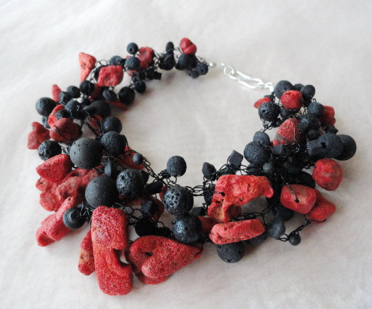 Als Schlauch, mit Perlen, Steinen, Lava, Korallen...