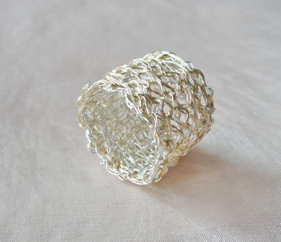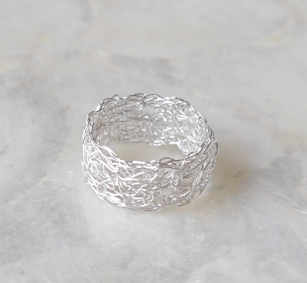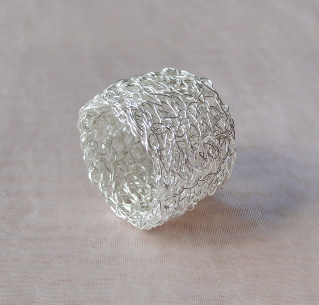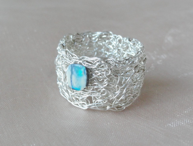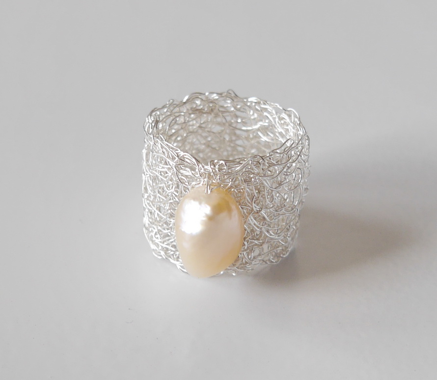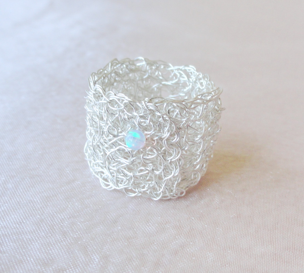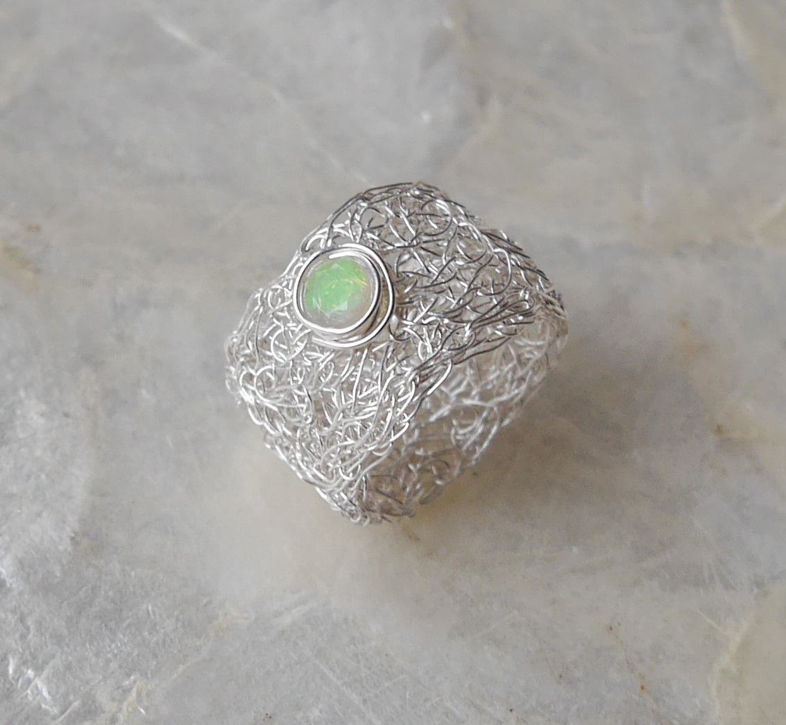 Gehäkelter und gestrickter Feinsilberdraht mit Süsswasserperle, Opal, Stein, Lava.....